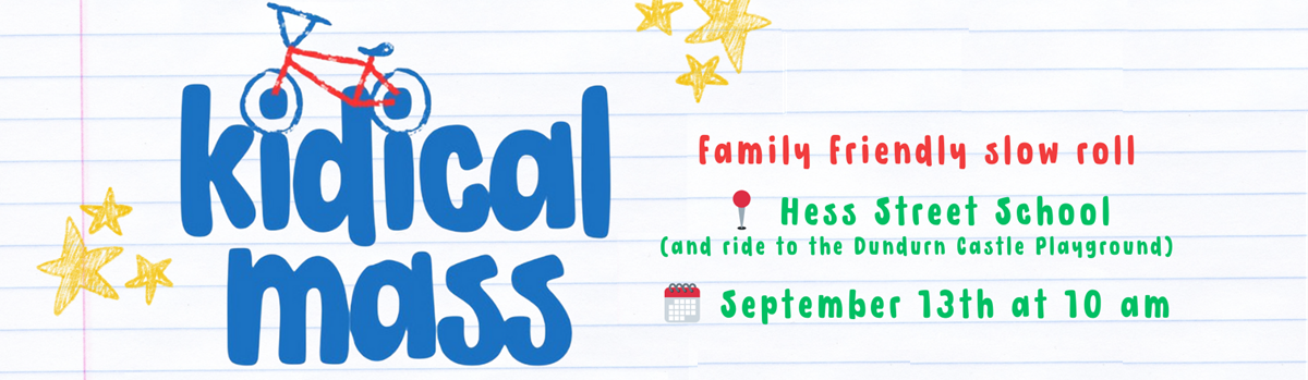 Kidical Mass is rolling again! Join Cycle Hamilton and partners for the next Kidical Mass ride on Saturday, September 13, 2025! This is a fun, family-friendly, and inclusive ride—no one gets left behind. This ride will be a slow roll from Hess Street School to the Dundurn Castle playground, featuring good vibes, good company, and plenty of smiles. The ride starts at 10:00 AM sharp, rain or shine. There will be juice boxes and a snack at the end for all riders. Tell a friend, bring the family, and let’s roll together!