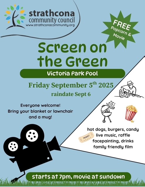 The Strathcona Community Council is holding its annual Screen on the Green family movie night on Friday, September 5th, with a rain date of September 6.